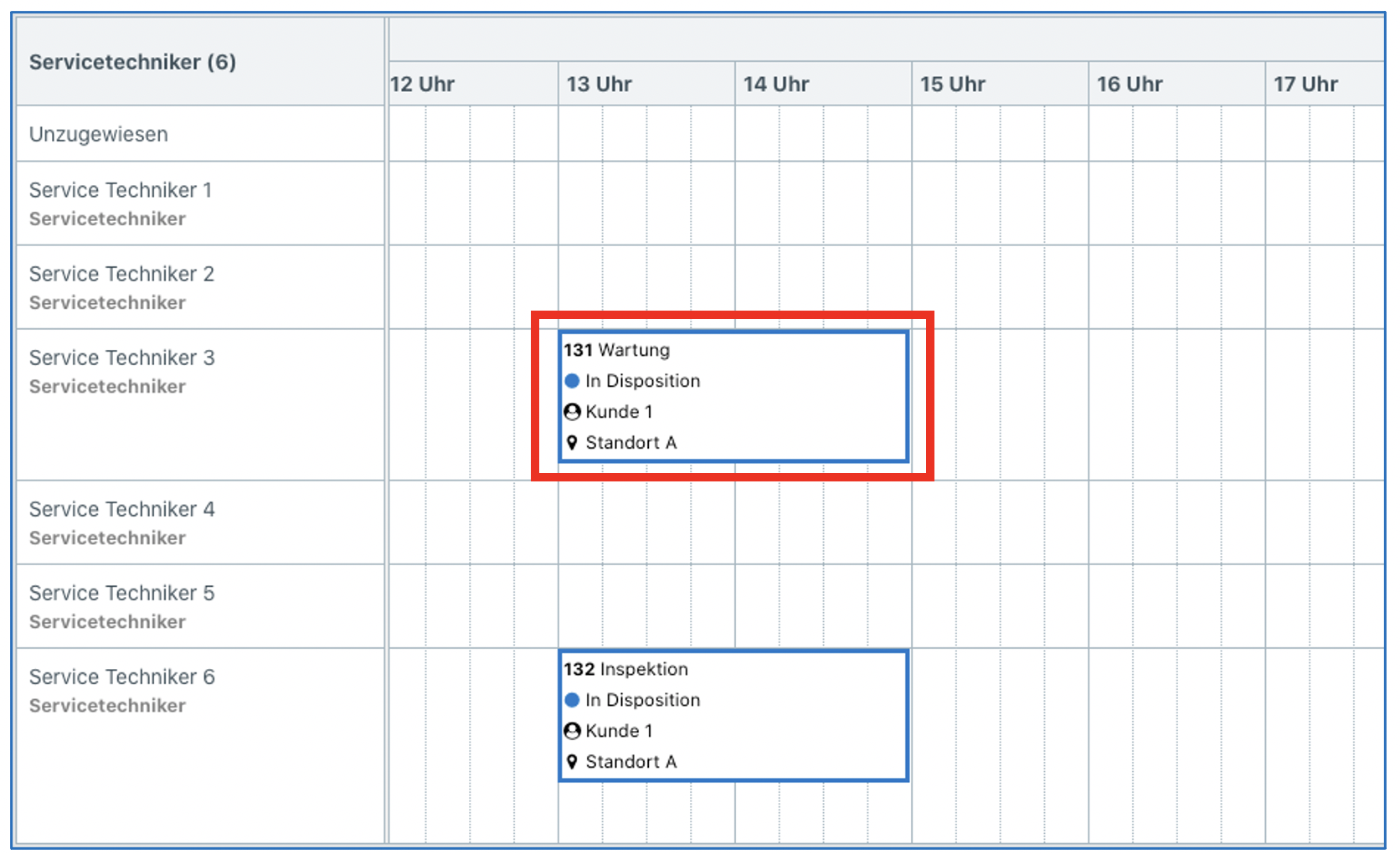 - Falls nötig, kann der Serviceeinsatz einfach verschoben werden (drag & drop).